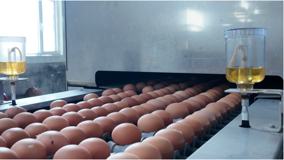 记者看到,中心集蛋体系经过智能传送带,将新鲜鸡蛋直接从鸡舍传送至近邻的分拣车间,这儿的“黑科技”更让记者大开眼界传送带上的鸡蛋首要经过细密喷雾清洗,外表的饲料残渣和粪便被完全冲净,随后进入烘干设备快速枯燥。紧接着,鸡蛋被主动翻转,大头朝上规整摆放,再经过蓝光照耀消毒,外表喷上食用油保鲜,最终经过智能检测设备。“这个设备能看到肉眼难以区分的细微裂纹。”孙涛介绍道。